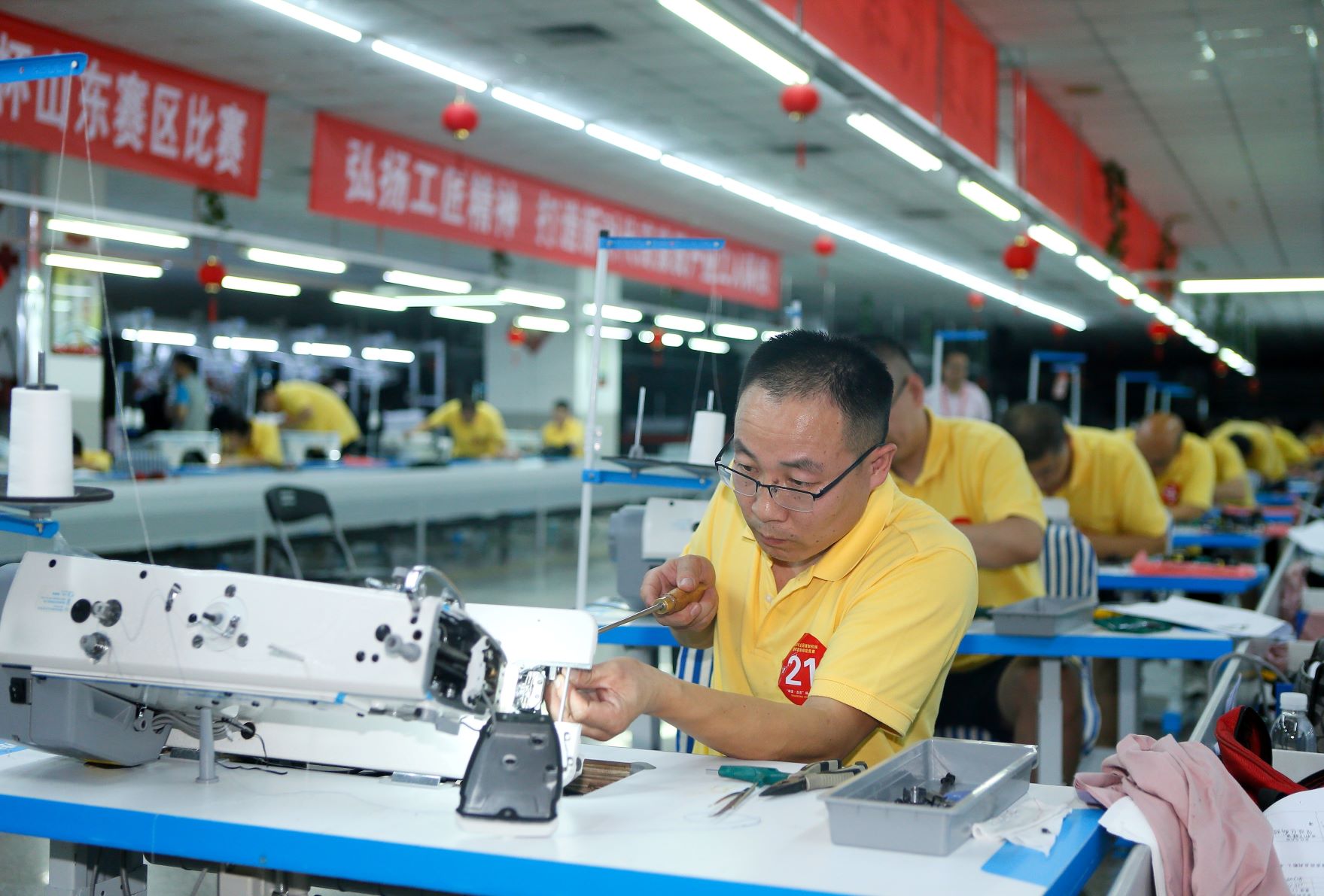 7月16—17日,由中國輕工業(yè)聯(lián)合會(huì )、中國縫制機械協(xié)會(huì )、中國財貿輕紡煙草工會(huì )、中國就業(yè)培訓技術(shù)指導中心主辦,即墨區總工會(huì )、即發(fā)集團有限公司、杰克科技股份有限公司聯(lián)合承辦,寧波勇耀縫制機械有限公司協(xié)辦的全國縫制機械維修職業(yè)技能競賽“即發(fā)·杰克”杯山東賽區比賽在即發(fā)集團舉行。